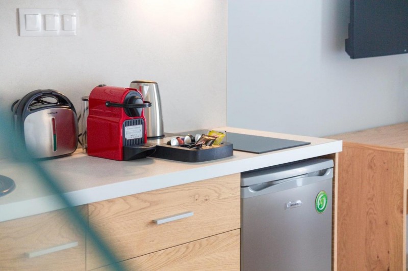 - первый этаж: 9 полностью оборудованных апартаментов (8 однокомнатных студий с душевой и 1 двухкомнатный апартамент);