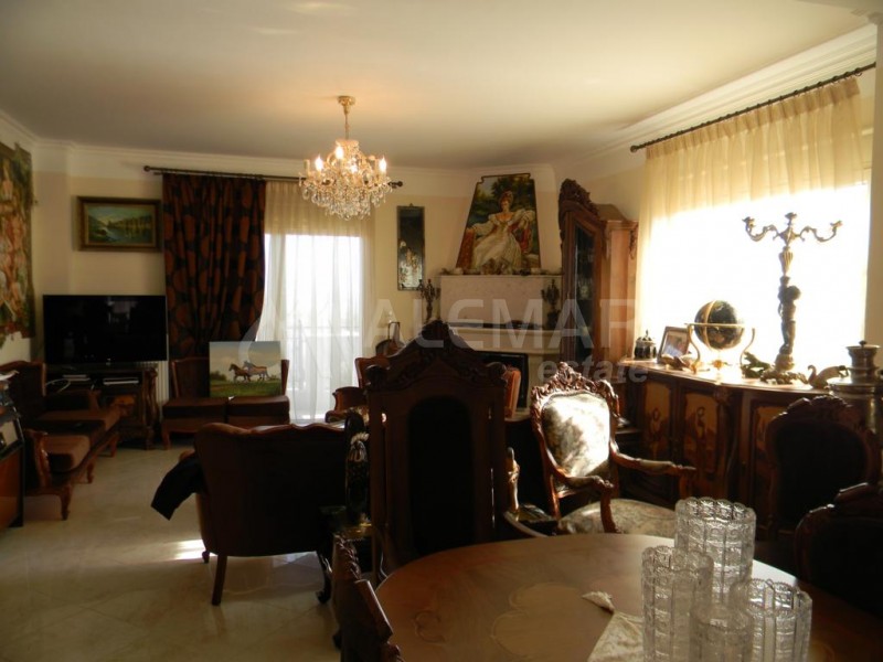 Роскошная трехэтажная вилла в неоклассическом стиле расположена в небольшом пригородном районτ города Салоники, в 14 км от международного аэоорорта "Макадония".