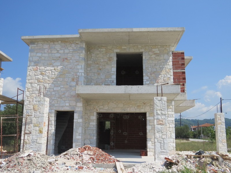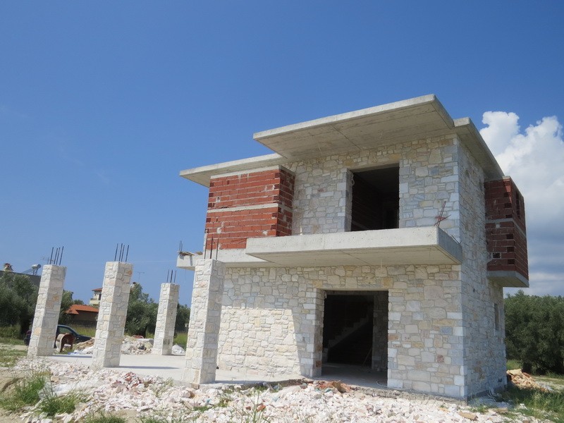 Выставлены на продажу 3 трехуровневых коттеджа в стадии незавершенного строительства, расположенные в тихом, небольшом курортном поселке полуострова Кассандра, Халкидики.
