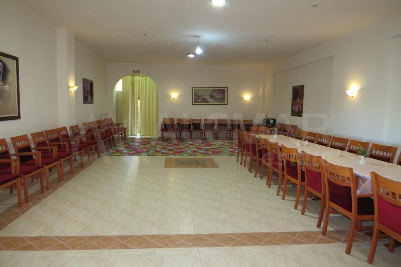 В основном корпусе располагаются: ресепшен, зал ожидания, бар, столовая, номерной фонд, конференц-зал, прачечная, складские помещения.